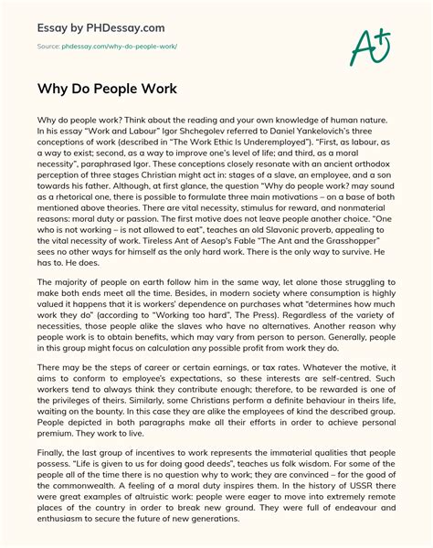 Read why do people work essay PDF